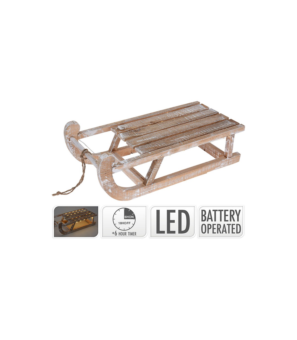 Base para árbol de navidad con 50 luces microLed en blanco cálido. Color blanco envejecido.. Temporizador 6 h. Funciona con 3 pilas AA (LR06) no incluidas.