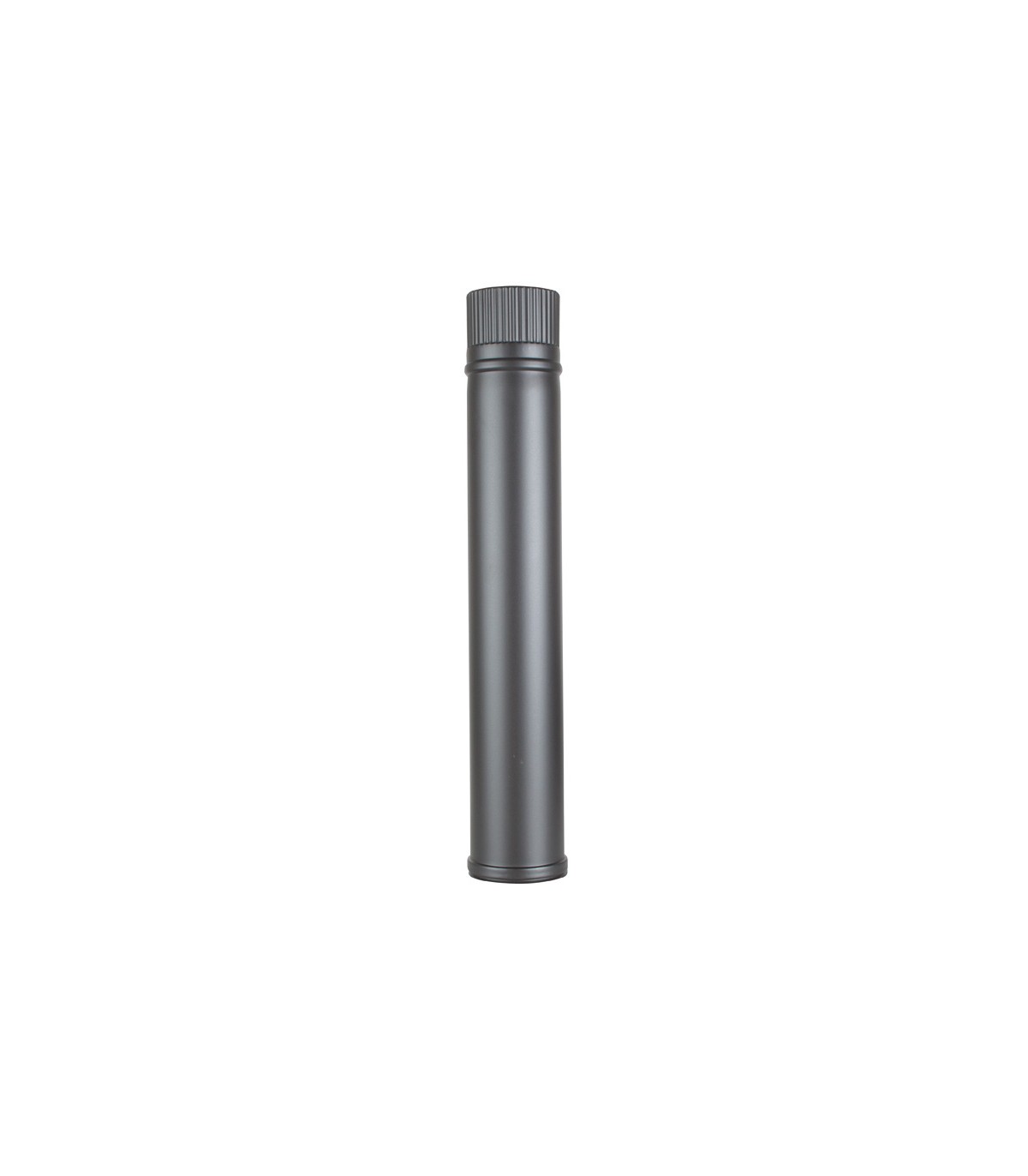 ø 80 mm. Conducto de simple pared fabricado en acero INOX AISI 316L, acabado mate rugoso color grafito con pintura calórica. Temperatura máxima trabajo 600ºC. Soldadura longitudinal por TIG. Unión macho-hembra con junta de silicona.