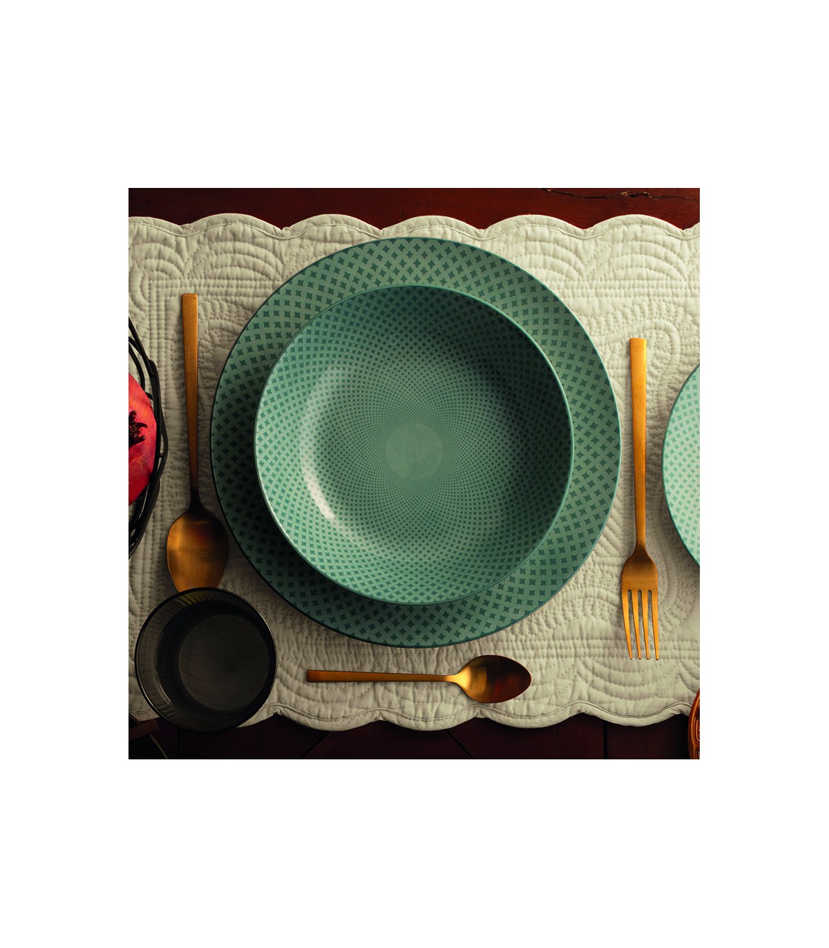 Vajilla de porcelana decorada de 18 piezas. Aptos para lavavajillas y microondas.