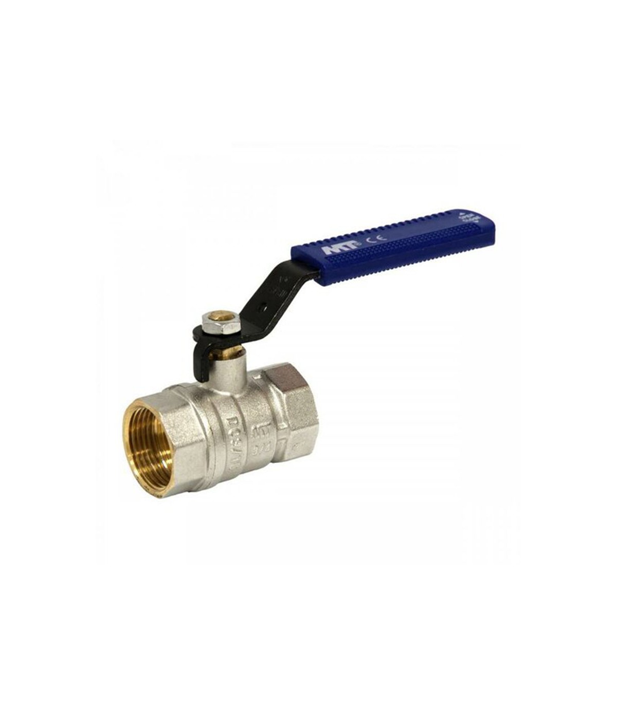 Palanca ergonómica en color azul de acero al carbono con recubrimiento de alta resistencia anticorrosión. Latón CW617N. Uso para agua fría y agua caliente (-20Cº / 120Cº).