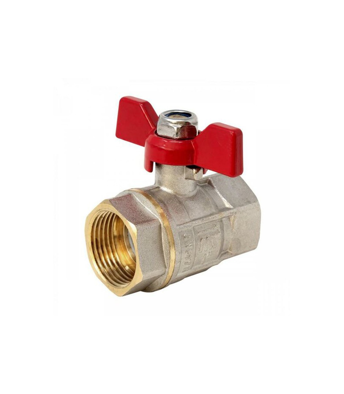 Paso total. Sistema antihielo. Certificado ACS. Cuerpo reforzado. Latón CW617N. Mariposa aluminio roja con tuerca autoblocante. PN-30. -20° / 120°.
