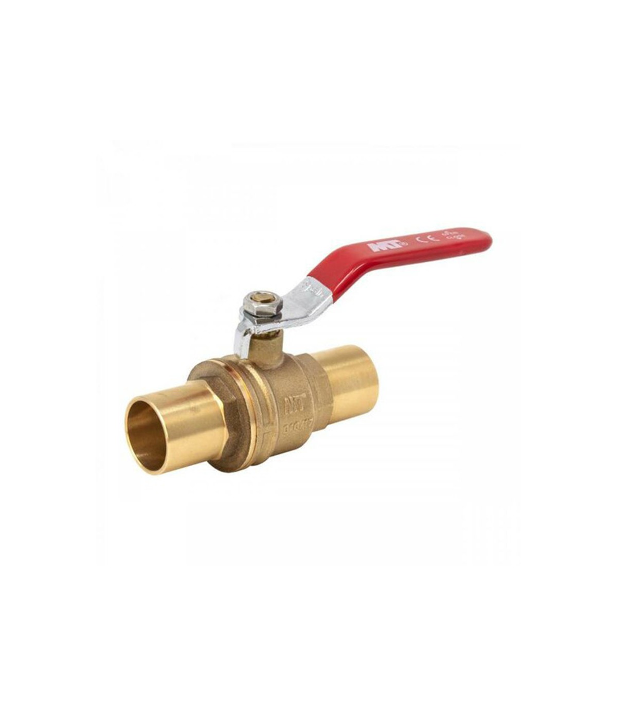 Cuerpo reforzado fabricado en latón CW617N y eje con juntas PTFE. Con tuerca autoblocante. Soldar. -20 ºC / 120 ºC.