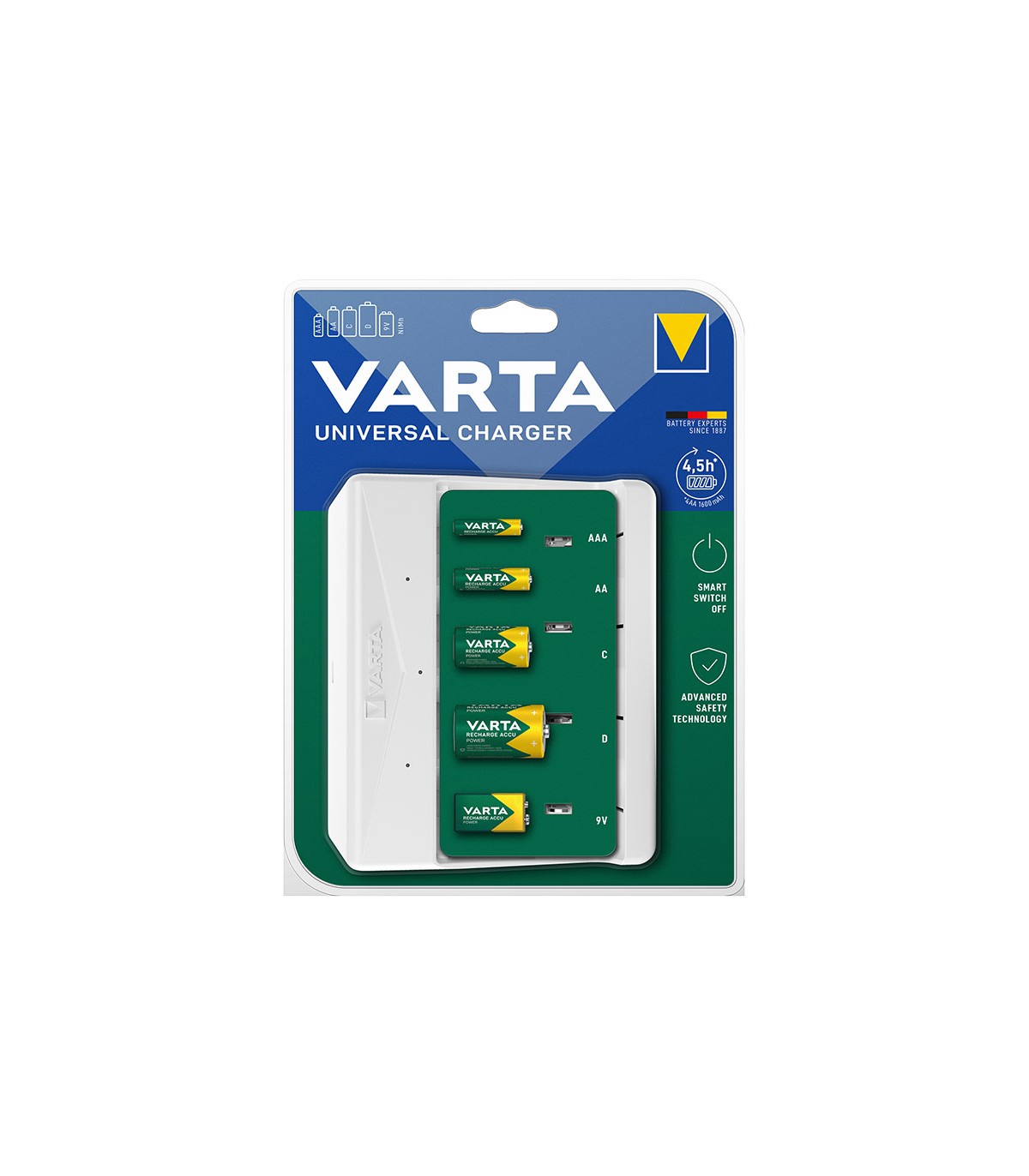 Equipo para cargar pilas recargables AA, AAA, C, D y 9V. Incluye cable tipo C.Tiempo de carga total 4,5 h.
