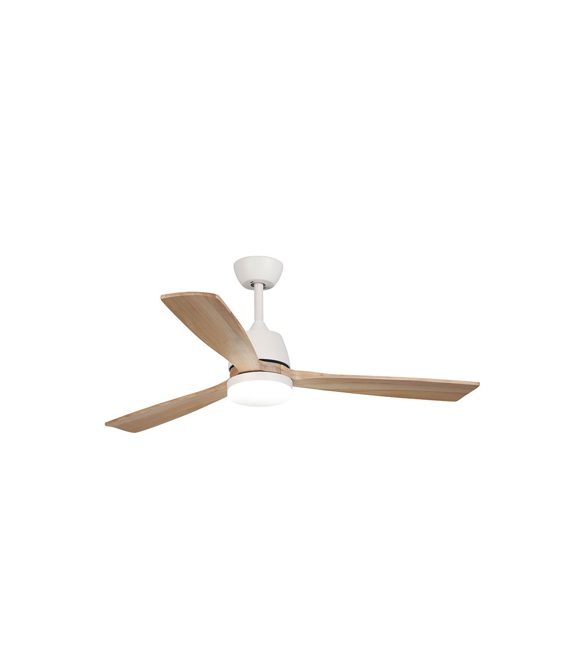 6 velocidades. 3 aspas imitación madera. Función viento natural. Doble sentido de giro de las aspas. Luz led de 20W con intensidad regulable, modo calida, fría y neutra. Mando a distancia (2 pilas AAA no incluídas).